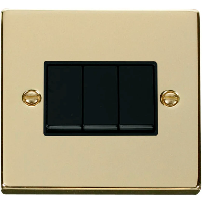 Click Scolmore Plate Switch 3 Gang 2 Way 10A Polished Brass Black Insert Victorian