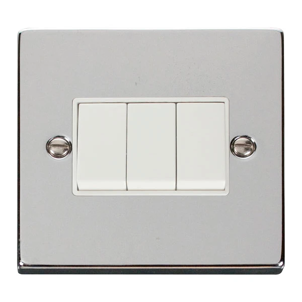 Click Scolmore Plate Switch 3 Gang 2 Way 10A Polished Chrome White Insert Victorian