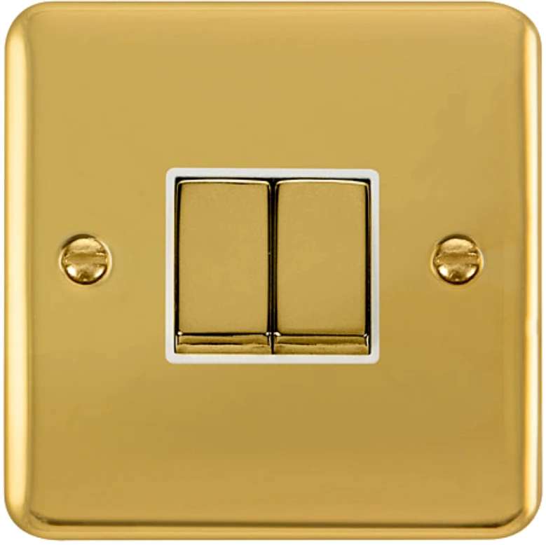 Click Scolmore Plate Switch Ingot 2 Gang 2 Way 10Ax Polished Brass White Insert
