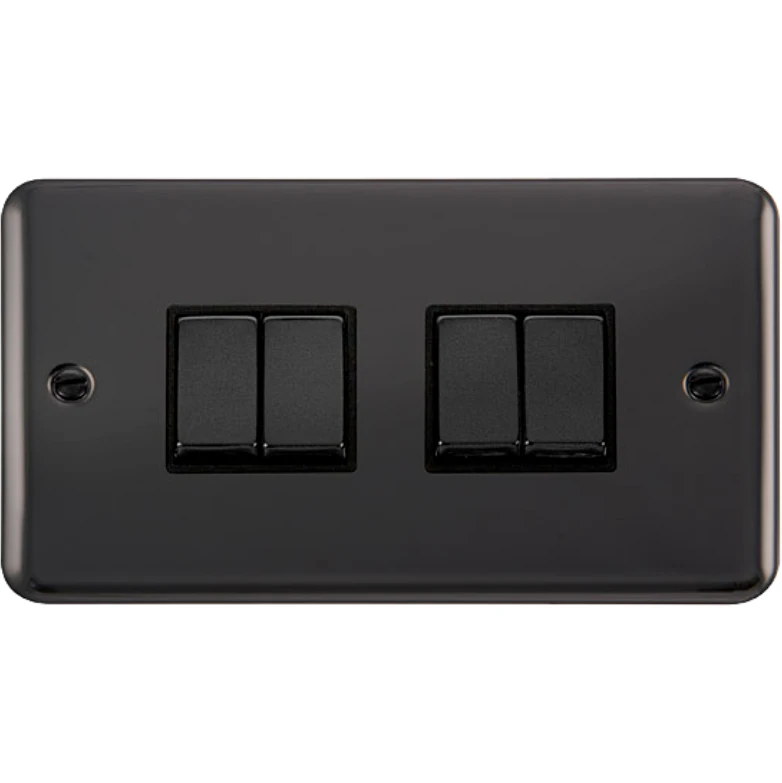 Click Scolmore Plate Switch Ingot 4 Gang 2 Way 10Ax Black Nickel Black Insert