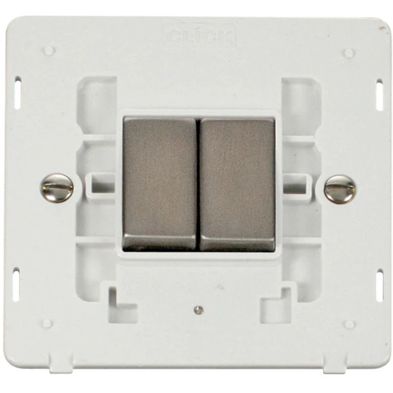 Click Scolmore Polar White 10AX Ingot 2 Gang 2 Way Stainless Steel Plate Switch Polar White Insert