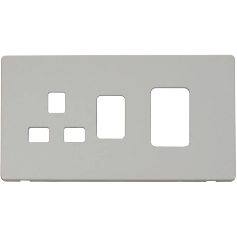 Definty polar white screwless cover plate 45A 2 gang switch with 13A switched socket outlet. · · · Dimensions 146mm (W) x 86mm (H) x 4mm (D) · · Style Screwless Cover Plate · · Finish Polar White · · Cover Plate: Polycarbonate · · Anti Microbial Certified No · · Operational Temperature -5°C to +40°C · · Warranty 10 Years · · For cleaning / polishing of products, use only a soft, dry, clean cloth.