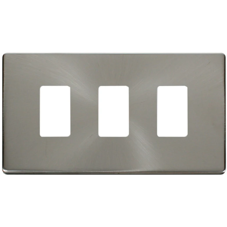 Click Scolmore Screwless Cover Plate Brushed Stainless 3 Gang GridPro Frontplate