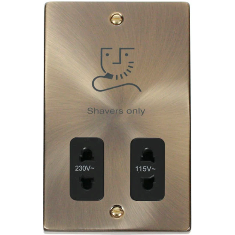 Click Scolmore Shaver Socket Dual Voltage 115/230V Antique Brass Black