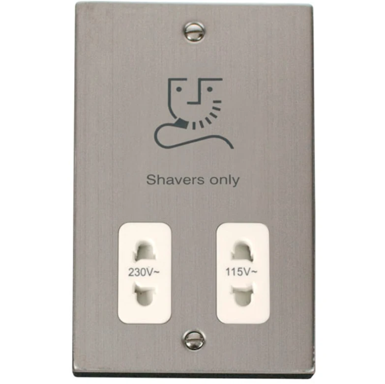 Click Scolmore Shaver Socket Dual Voltage 115/230V Stainless Steel White Insert Victor