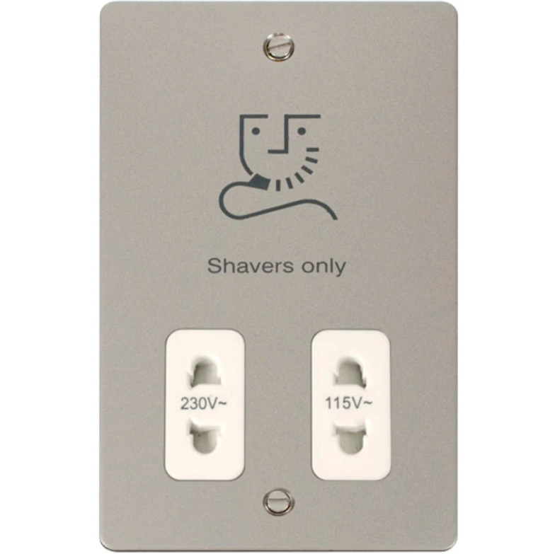 Click Scolmore Shaver Socket White Insert 115/230V Pearl Nickel