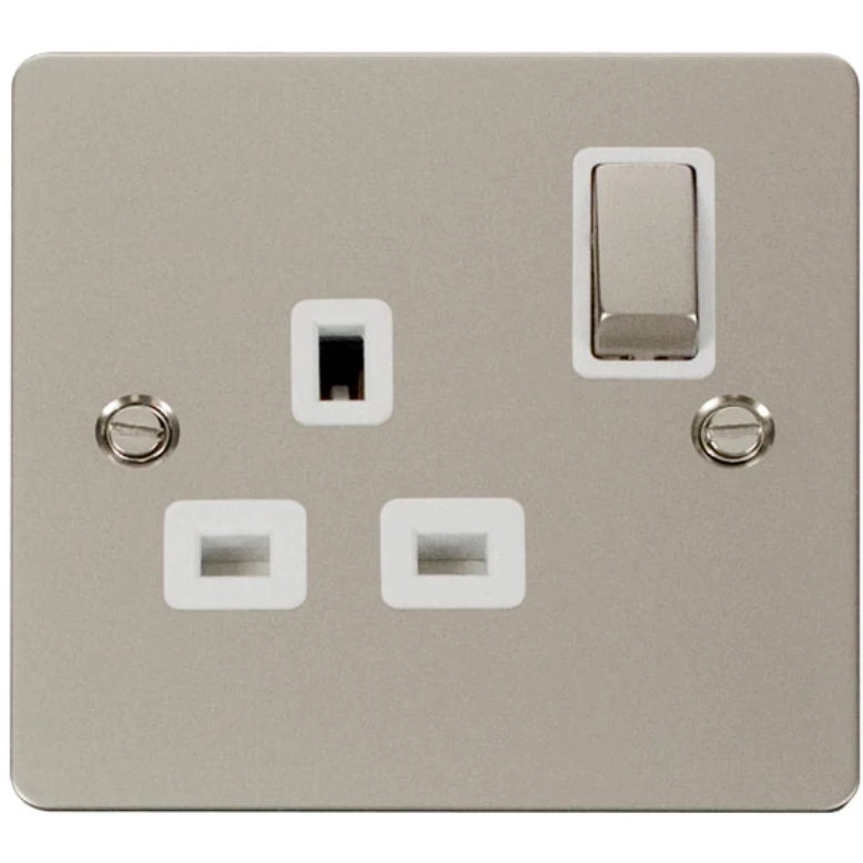 Click Scolmore Socket 1 Gang DP Switched 13A Pearl Nickel White Insert