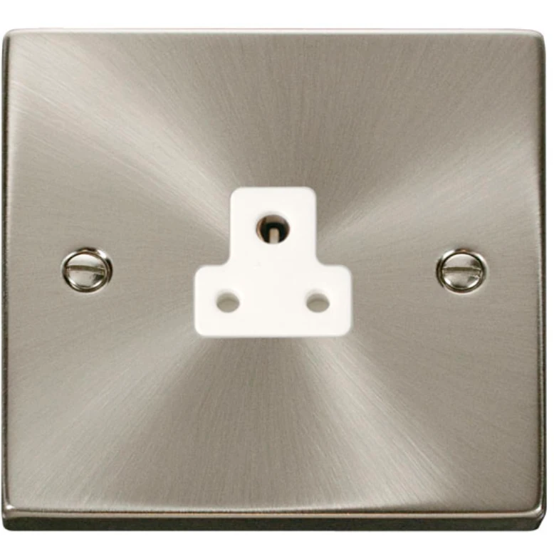 Click Scolmore Socket 1 Gang UnSwitched Round Pin 2A Satin Chrome White Insert Victorian