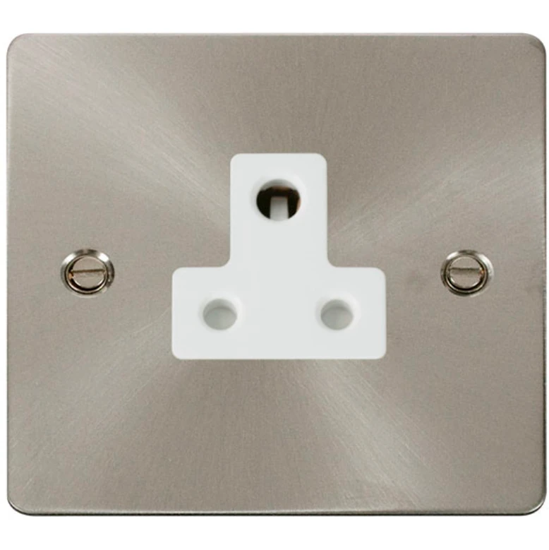 Click Scolmore Socket 1 Gang UnSwitched Round Pin 5A Brushed Stainless White Insert