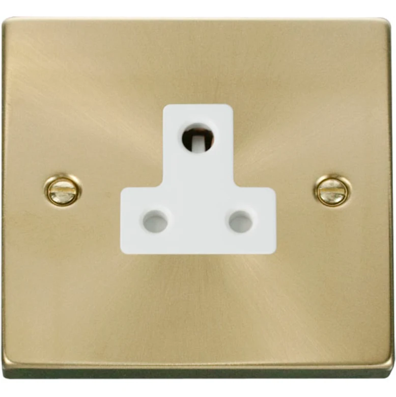 Click Scolmore Socket 1 Gang UnSwitched Round Pin 5A Satin Brass White Insert Victori