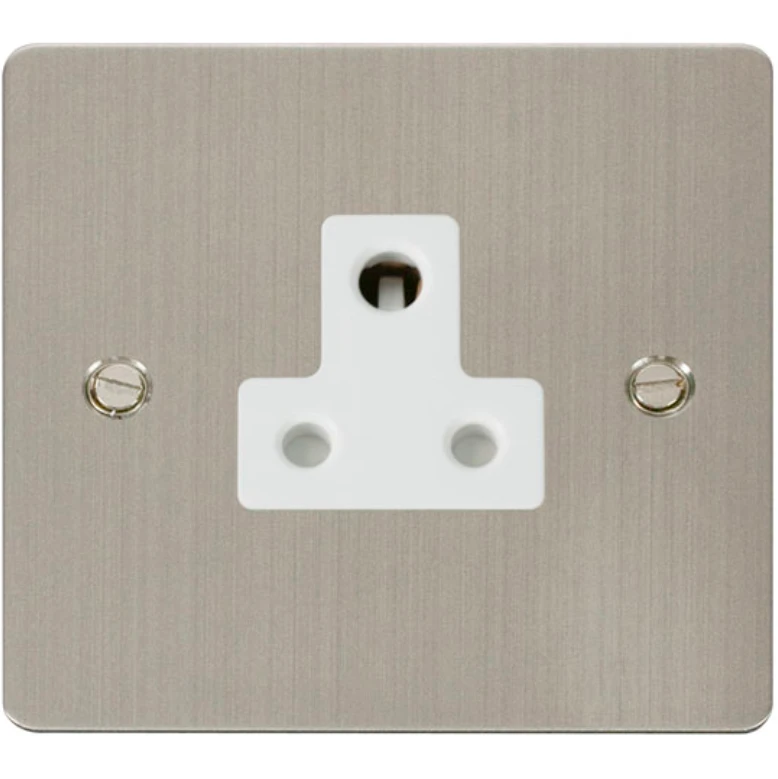 Click Scolmore Socket 1 Gang UnSwitched Round Pin 5A Stainless Steel White Insert