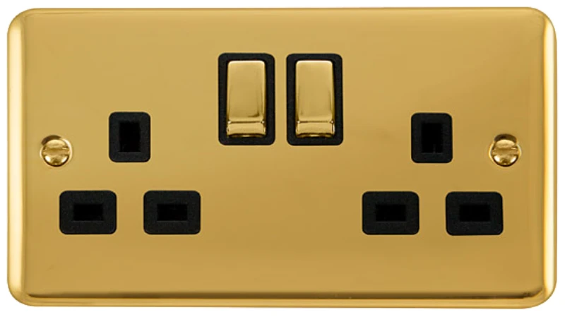 Click Scolmore Socket Ingot 2 Gang DP Switched 13A Polished Brass Black Insert