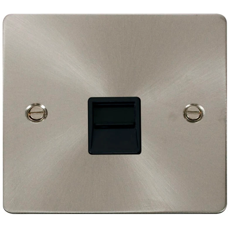 Click Scolmore Socket Tel Master Single Brushed Stainless Black Insert