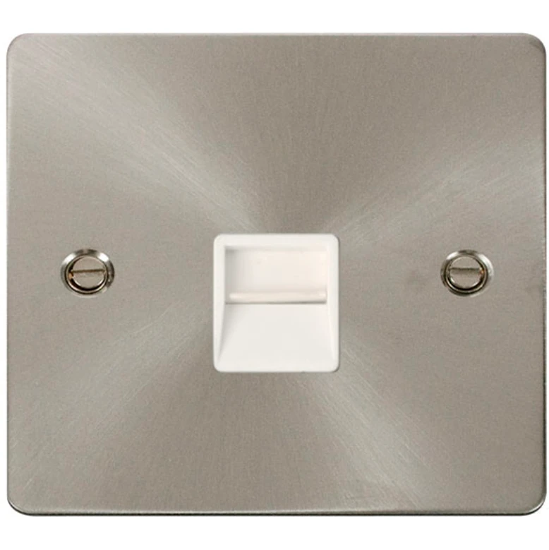 Click Scolmore Socket Tel Master Single Brushed Stainless White Insert