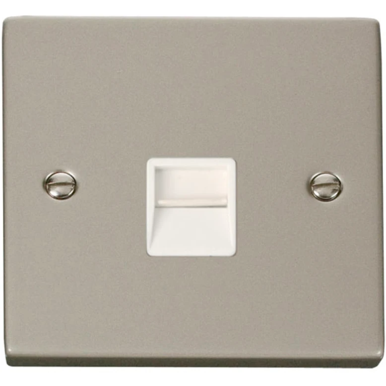 Click Scolmore Socket Tel Master Single Pearl Nickel White Insert Victorian
