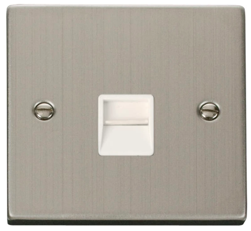 Click Scolmore Socket Tel Secondary Single Stainless Steel White Insert Victorian