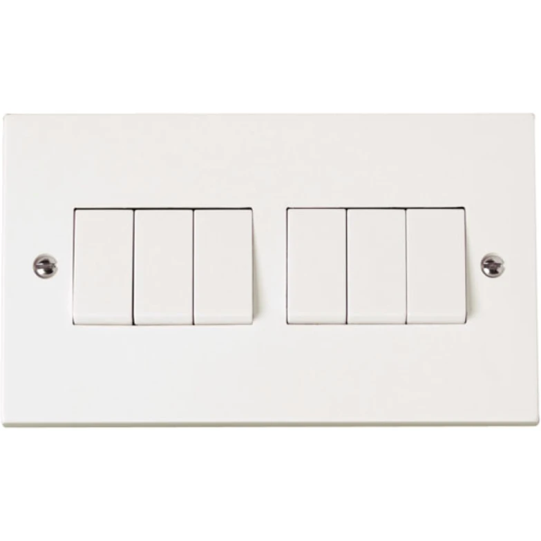 Click Scolmore Square Edge Polar White 10AX 6 Gang 2 Way Plate Switch