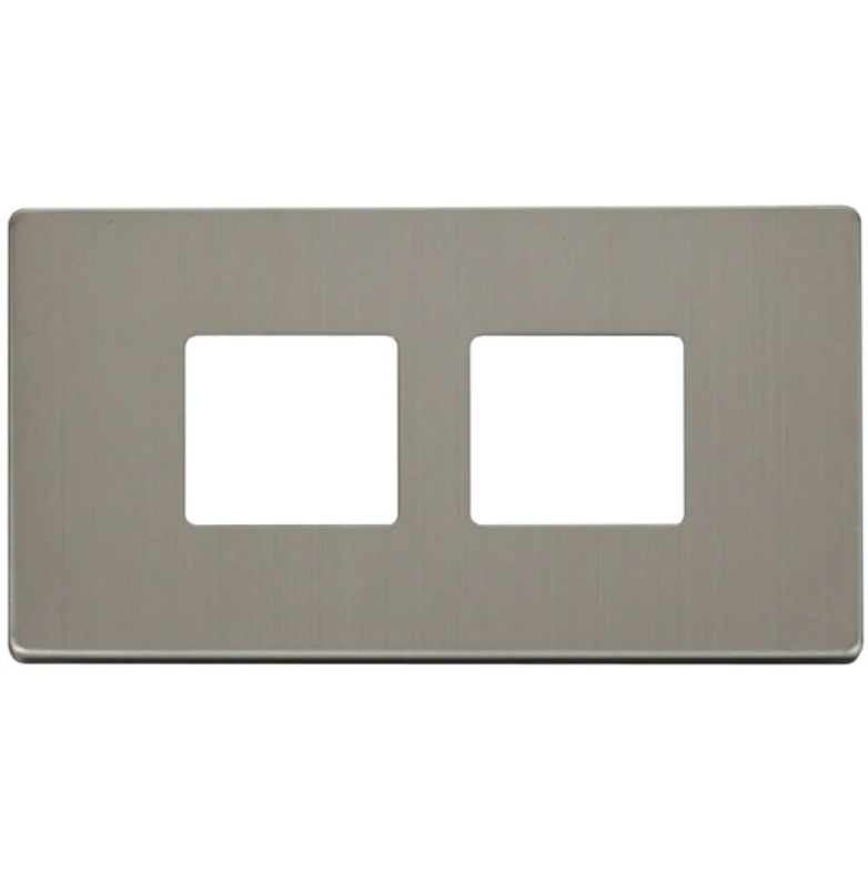 Click Scolmore Stainless Steel 2 Gang MiniGrid 2 x 2 Apertures Cover Plate
