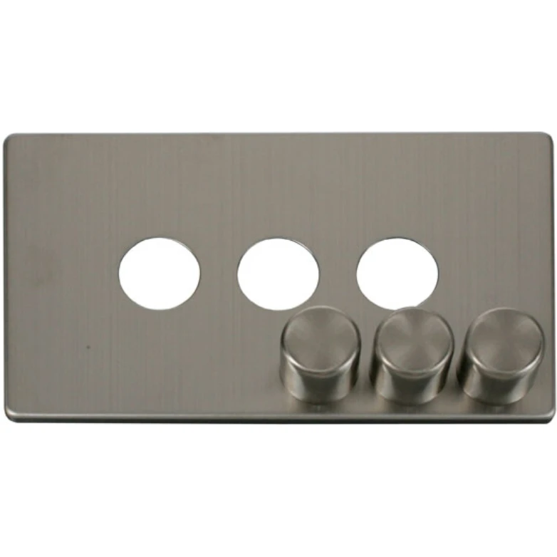 Click Scolmore Stainless Steel 3 Gang Dimmer Switch Cover Plate & Control Buttons