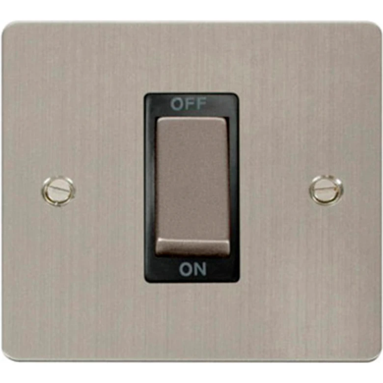 Click Scolmore Switch 1 Gang DP 45A Stainless Steel Black Insert