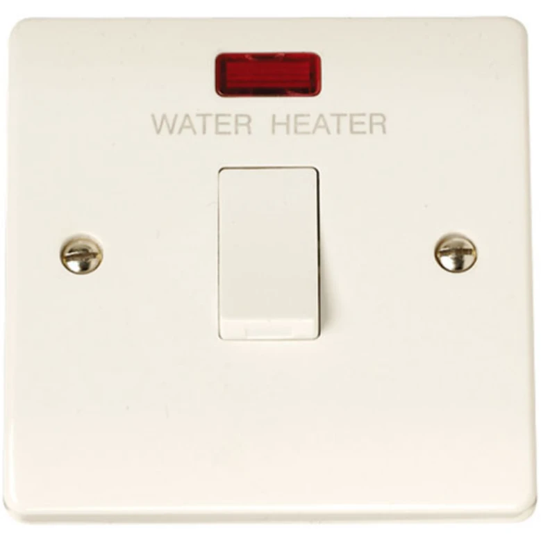 Click Scolmore Switch DP Water Heater Neon 20A White