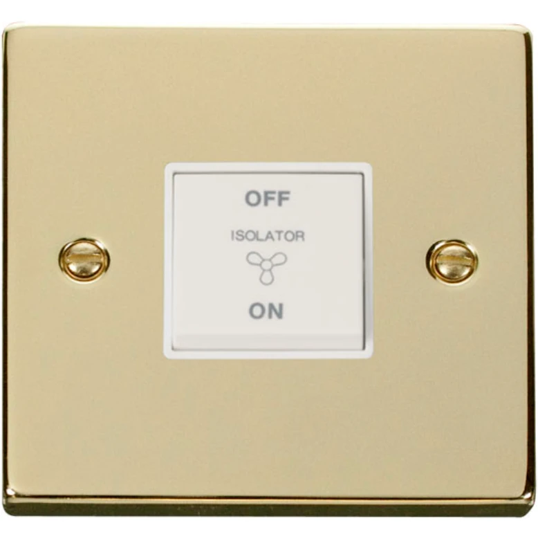 Click Scolmore Switch Fan Isolator 3P 10A Polished Brass White Insert Victorian