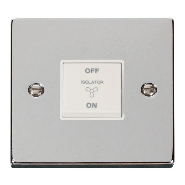 Click Scolmore Switch Fan Isolator 3P 10A Polished Chrome White Insert Victorian