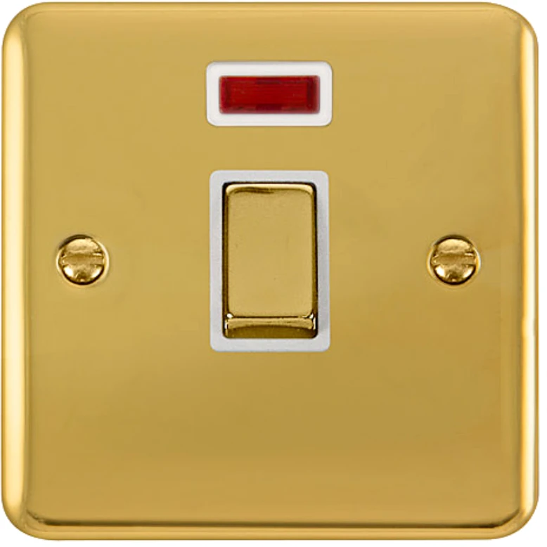 Click Scolmore Switch Ingot DP Neon 20A Polished Brass White Insert