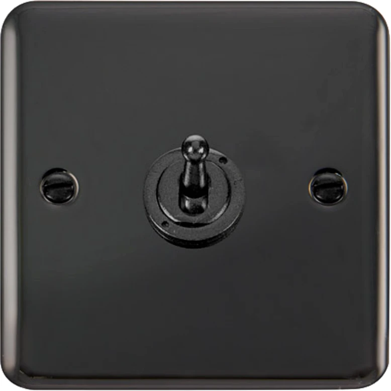 Rounded profile black nickel 10AX 1 gang 2 way toggle plate switch. · · · Plate Dimensions (mm) 88 (W) x 88 (H) x 8 (D) · · Dimensions With Gasket (mm) 91 (W) x 91 (H) x 9 (D) · · Style Rounded Profile · · Finish Black Nickel · · Gasket Colour Black · · Switch Finish Black Nickel · · Anti Microbial Certified No · · Rated Voltage (V) 250 · · Inductive Load Rating (AX) 10 · · Load Rating Comments Suitable for Inductive Loads