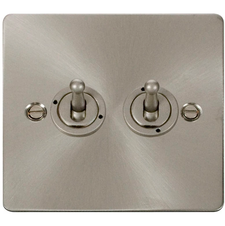 Click Scolmore Toggle Switch 2 Gang 2 Way 10A Brushed Stainless