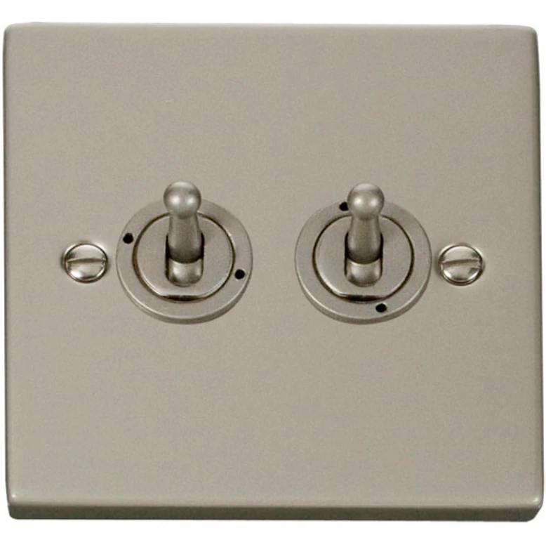Click Scolmore Toggle Switch 2 Gang 2 Way 10A Pearl Nickel Black&White Gasket