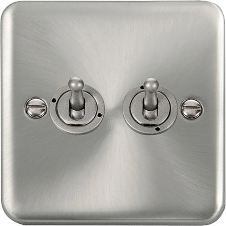 Deco plus rounded profile satin chrome 10AX 2 gang 2 way toggle plate switch. · · · Dimensions 88mm (W) x 88mm (H) x 8mm (D) · · Plate Design & Finish Deco Plus Rounded Profile Satin Chrome · · Gasket Colour Supplied With Both Black & White Gasket · · Switch Finish Pearl Nickel · · Front Plate: Stainless Steel · · Maximum Voltage 250V · · Load Rating 10AX (Suitable for Inductive Loads) · · Plate Fixing Centres 60.3mm · · Terminal Size 4.9mm x 4.1mm · · Terminal Torque 1.2Nm