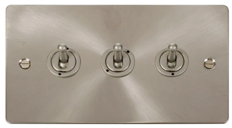 Click Scolmore Toggle Switch 3 Gang 2 Way 10A Brushed Stainless