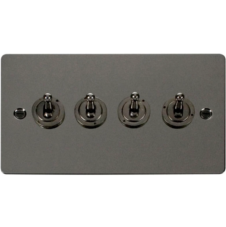 Click Scolmore Toggle Switch 4 Gang 2 Way 10A Black Nickel