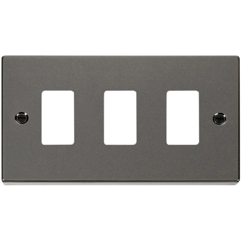 Click Scolmore Victorian Black Nickel Black Gasket 3 Gang GridPro Frontplate