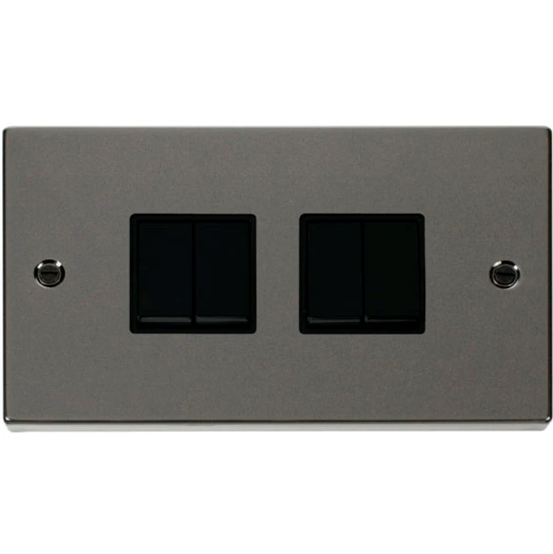 Click Scolmore Victorian Black Nickel Black Insert 10AX 4 Gang 2 Way Plate Switch