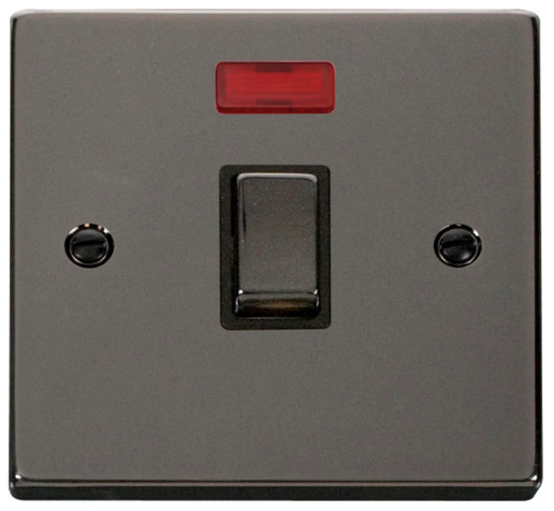 Click Scolmore Victorian Black Nickel Black Insert 20A Ingot Double Pole Plate Switch With Neon