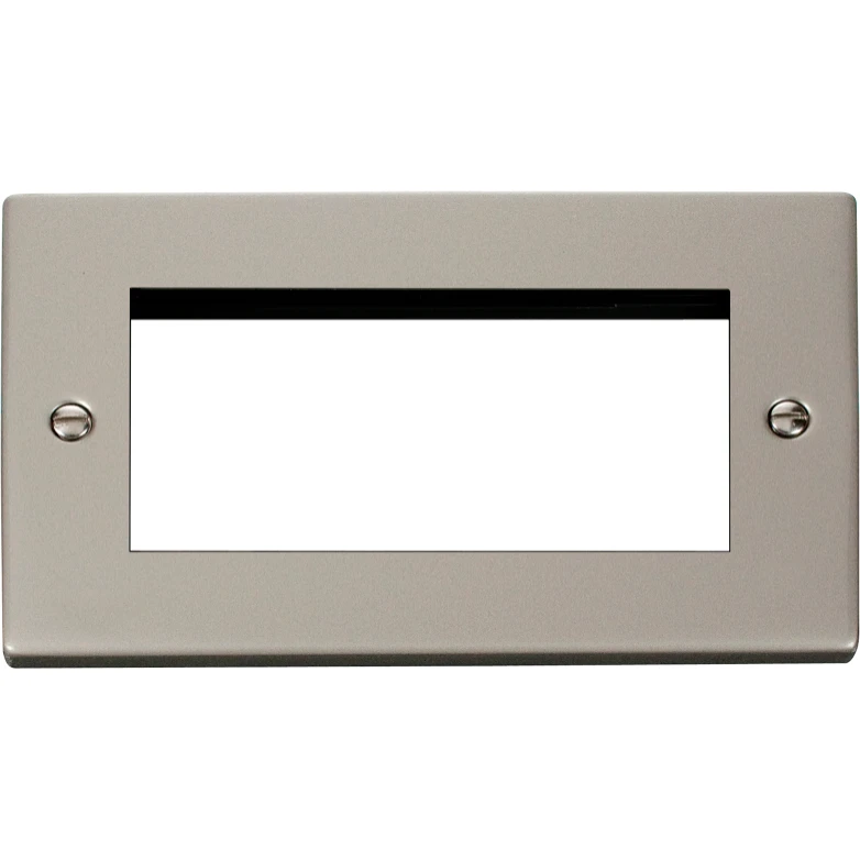 Click Scolmore Victorian Pearl Nickel 2 Gang New Media Unfurnished Plate 4 Apertures