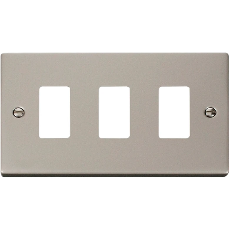 Click Scolmore Victorian Pearl Nickel 3 Gang GridPro Frontplate