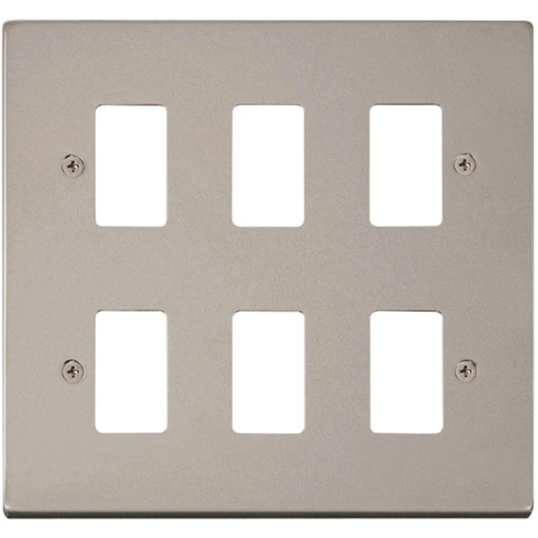 Click Scolmore Victorian Pearl Nickel 6 Gang GridPro Frontplate