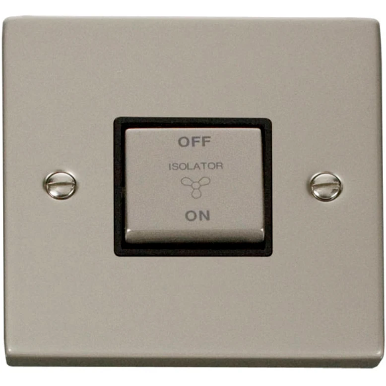 Click Scolmore Victorian Pearl Nickel Black Insert 10A Ingot 3 Pole Fan Isolation Plate Switch