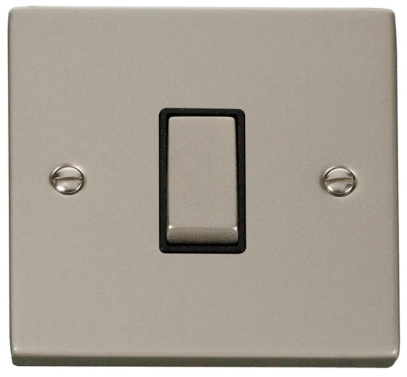 Click Scolmore Victorian Pearl Nickel Black Insert 10AX Ingot 1 Gang 2 Way Plate Switch