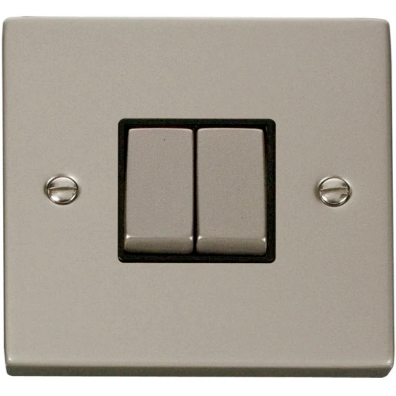 Click Scolmore Victorian Pearl Nickel Black Insert 10AX Ingot 2 Gang 2 Way Plate Switch