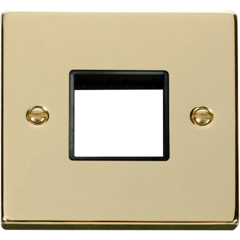 Deco victorian polished brass black insert 1 gang minigrid unfurnished plate 2 apertures. · · · Dimensions 88mm (W) x 88mm (H) x 8mm (D) · · Plate Design & Finish Victorian Polished Brass · · Insert & Gasket Colour Black · · Front Plate: Stainless Steel · · Insert: Urea · · Plate Fixing Centres 60.3mm · · Ingress Protection IP20 · · Operational Temperature -5C to +40C · · Warranty 10 Years · · Ensure that the mains supply is isolated before commencing installation and refer to the circuit diagram with the relevant product.