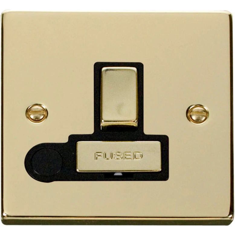 Click Scolmore Victorian Polished Brass Black Insert 13A Ingot Double Pole Switched Fused Connection Unit With Optional Flex Outlet