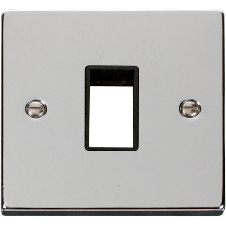 Click Scolmore Victorian Polished Chrome Black Insert 1 Gang MiniGrid Unfurnished Plate 1 Aperture