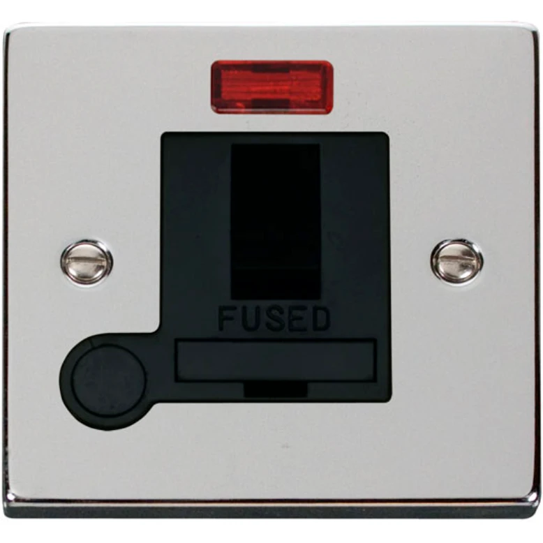 Click Scolmore Victorian Polished Chrome Black Insert 13A Double Pole Switched Fused Connection Unit With Neon & Optional Flex Outlet