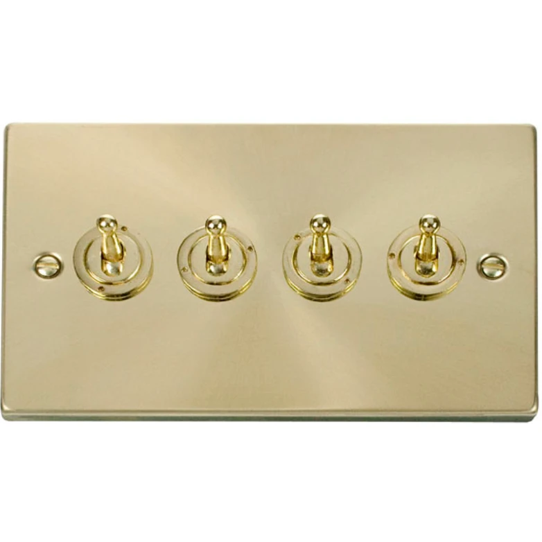 Click Scolmore Victorian Satin Brass 10AX 4 Gang 2 Way Toggle Plate Switch
