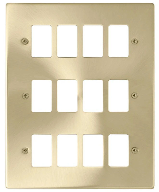 Click Scolmore Victorian Satin Brass 12 Gang GridPro Frontplate