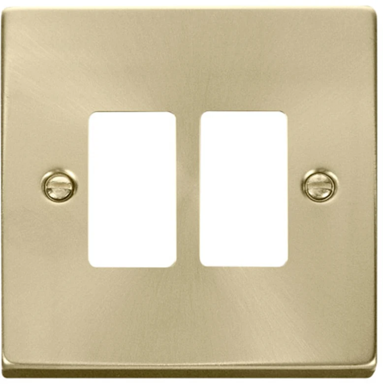 Click Scolmore Victorian Satin Brass 2 Gang GridPro Frontplate